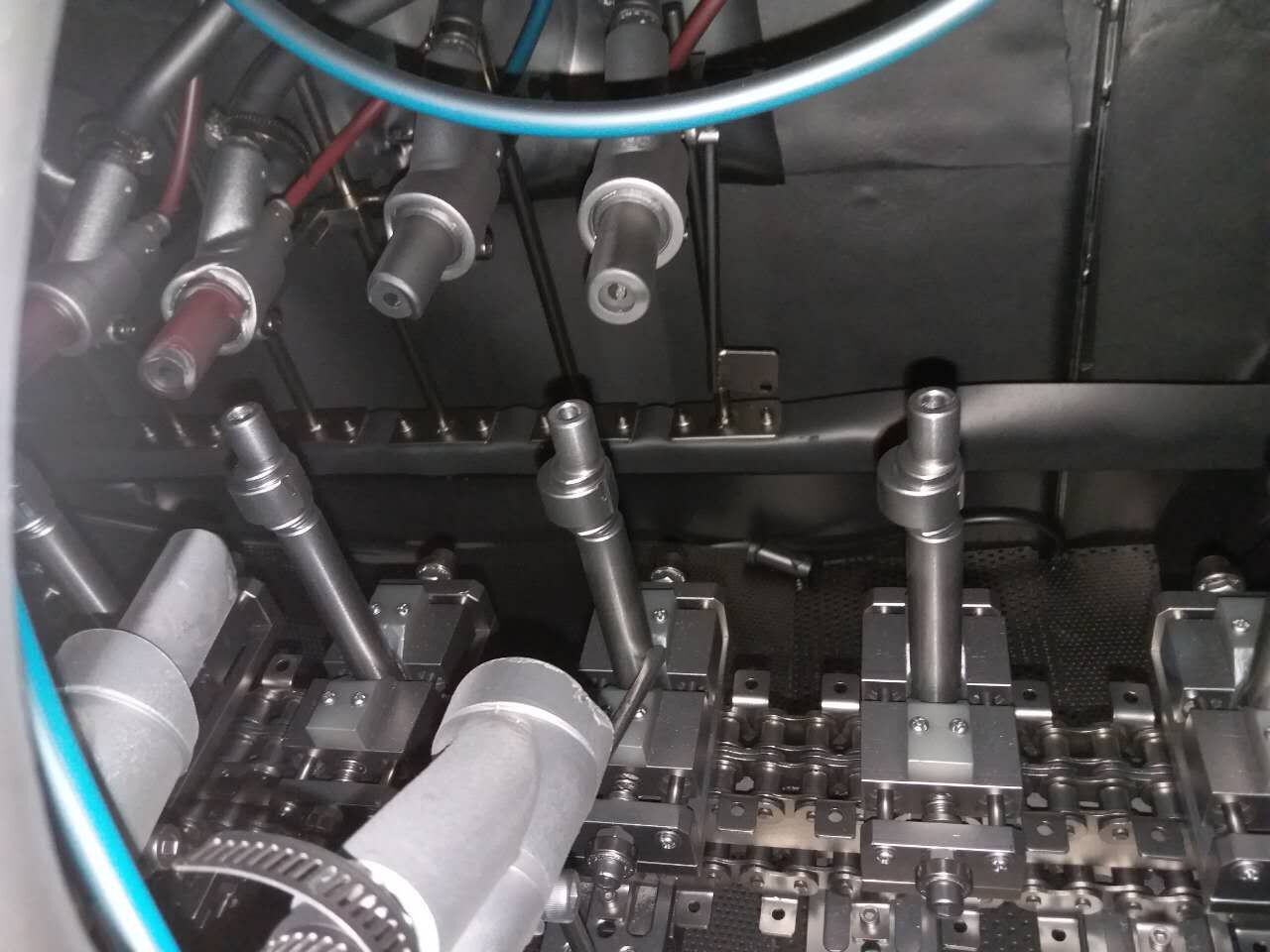 曲軸去毛刺設(shè)備由主機、曲軸工裝夾具、噴槍系統(tǒng)、磨料回收、磨料分選、除塵器、電氣控制等組成。加工方式,人工或者機器將曲軸放入待加工區(qū)域,曲軸會自動進入到噴砂加工區(qū),加工好的產(chǎn)品進入吹凈室,吹干表面粉塵,然后進入待加工區(qū),人工或者機器將曲軸取下即可。